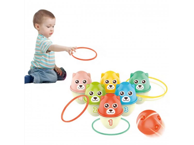 - Daugiafunkcinis žaidimas – žiedų mėtymas, bokšto statymas, spalvų ir skaičių derinimas.