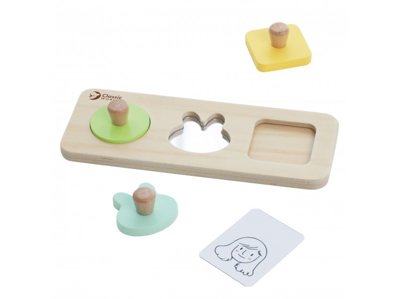 Tai įtraukiantis galvosūkis, reikalaujantis mažylio susikaupimo ir pastabumo, siekiant teisingai priderinti figūrėles prie atitinkamų vietų. Šio tipo žaislai puikiai lavina pažintinius gebėjimus ir atmintį, moko atpažinti formas, spalvas bei skirtumus. Be to, paslėpti elementai, tokie kaip veidrodėlis ar paveikslėlis, skatina vaiko vaizduotę.