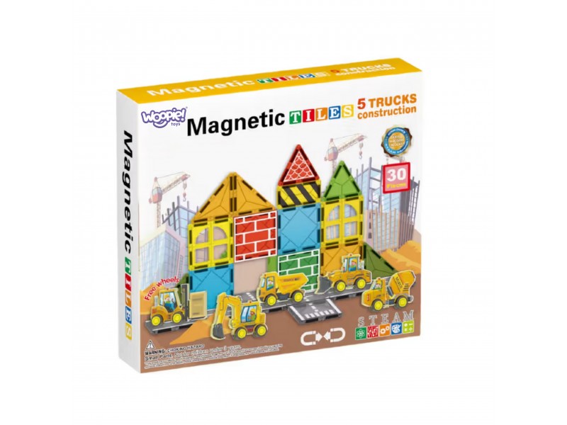 Magnetinių kaladėlių konstruktorius su statybine technika iš „Woopie“ yra puikus būdas sujungti kūrybiškumą su jaudinančiu statybų pasauliu. Dėl stiprių magnetų vaikai gali lengvai statyti stabilias ir spalvingas konstrukcijas, o rinkinyje esančios realistiškos statybinės mašinos su laisvai judančiais ratais įkvėps mažuosius inžinierius naujiems žaidimams. Šis 30 dalių rinkinys, kuriame kaladėlių matmenys yra 7,5 x 7,5 cm, idealiai pritaikytas mažoms vaiko rankytėms. Tai ne tik smagus, bet ir saugus bei patvarus žaislas, užtikrinantis greitą ir nenuviliantį žaidimo procesą. Puiki dovana, skatinanti vaizduotę, lavinanti rankų įgūdžius ir mokanti bendradarbiauti.