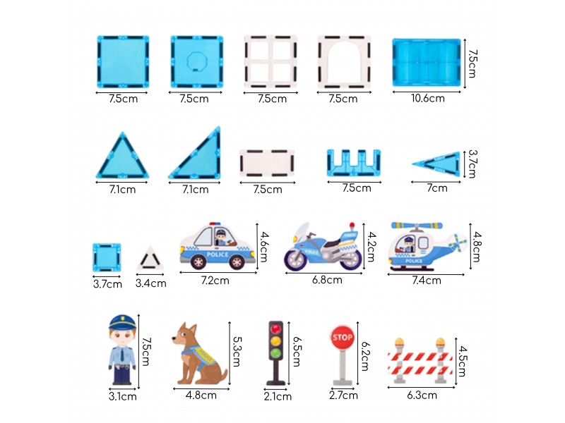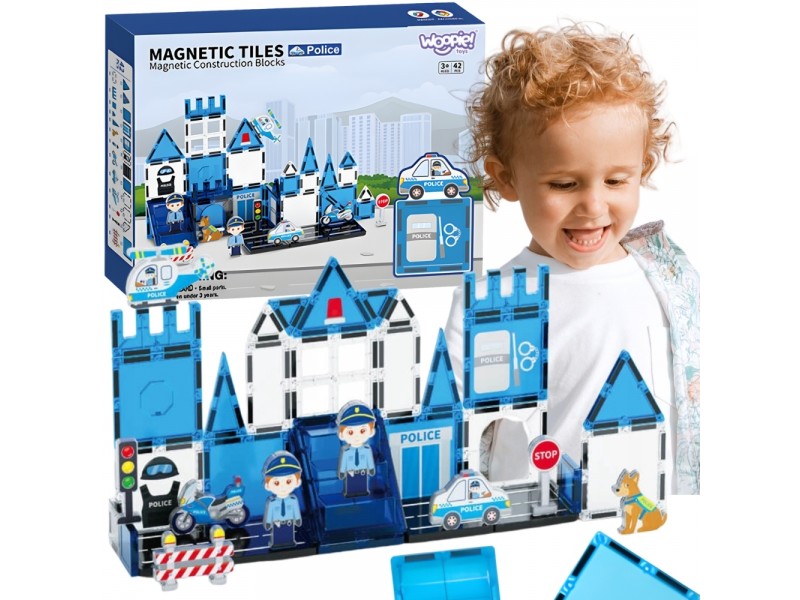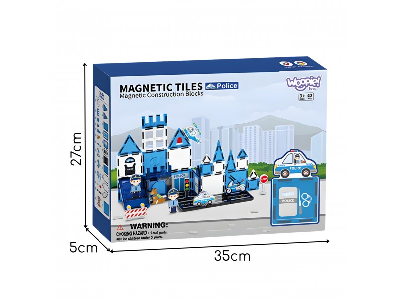 Leiskite savo mažajam pareigūnui pasinerti į jaudinantį nuotykių pasaulį su Woopie magnetiniu konstruktoriumi „Policijos komisariatas“! Šis kūrybiškas 42 dalių žaislas suteikia galimybę vaikams sukurti savo unikalią policijos nuovadą iš magnetinių plokštelių ir gausybės priedų. Dėl itin stiprių magnetų, visi elementai jungiasi tvirtai ir patikimai, todėl konstrukcijos išlieka stabilios ir atlaiko aktyviausius žaidimus. Policijos automobilis, sraigtasparnis, pareigūnų figūrėlės, tarnybinis šuo ir kelio ženklai paverčia žaidimą dar įdomesniu ir realistiškesniu. Tai ne tik smagi pramoga, bet ir puikus būdas lavinti kūrybiškumą, loginį mąstymą bei planavimo įgūdžius. Pagamintas iš saugių, aukštos kokybės medžiagų, šis rinkinys yra tobula dovana kiekvienam mažajam policijos gerbėjui.