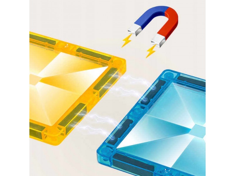 - Dėl integruotų magnetų kaladėlės jungiasi itin lengvai.