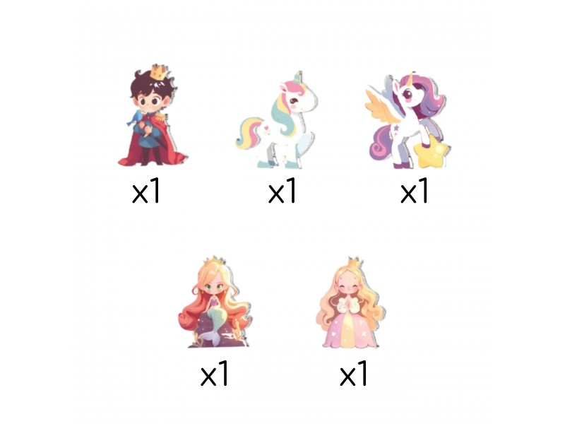 - Princesės, princo ir dviejų vienaragių figūrėlės.