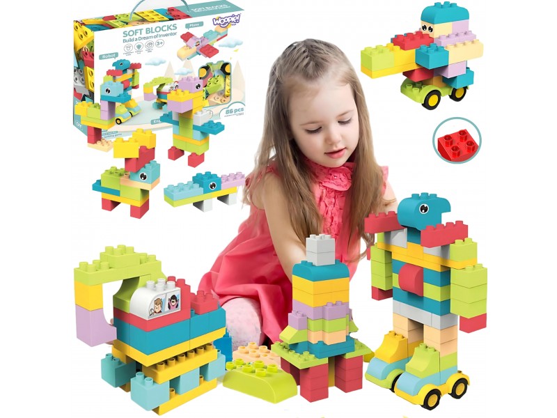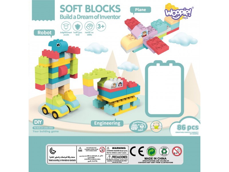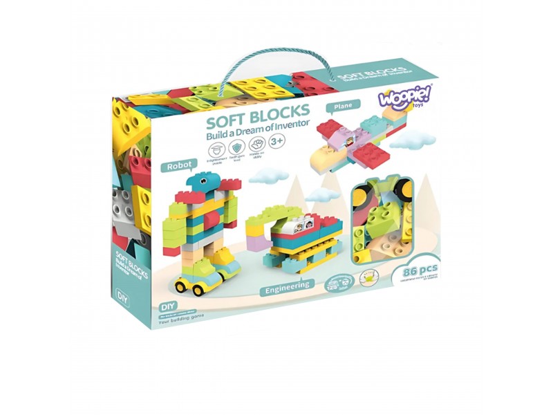 Didelės konstrukcinės kaladėlės 3D | 86 el. minkštos | Woopie 44374