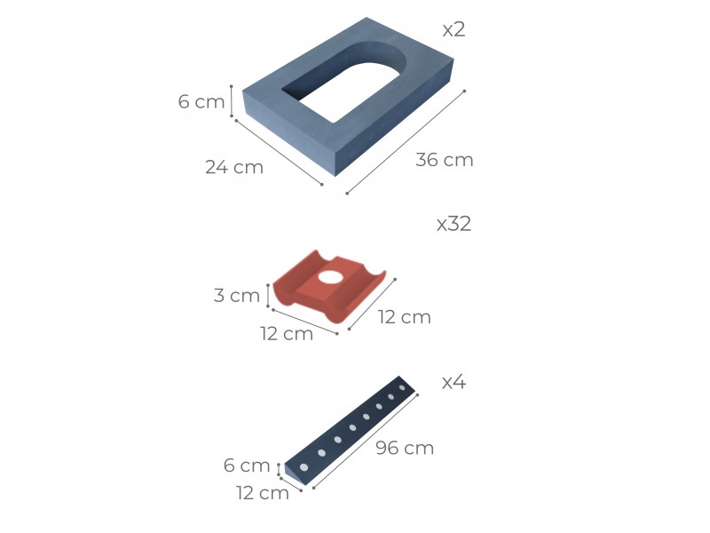- Rekomenduojame papildomai įsigyti specialią dėžę kaladėlėms laikyti lauke (prekės kodas: CW70158).