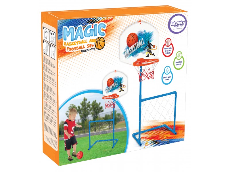 Šis Woopie prekės ženklo sportinis rinkinys 2in1 yra puikus aktyvaus laisvalaikio pasirinkimas patiems mažiausiems vaikams. Vaikas gali pats nuspręsti, kokį žaidimą pasirinkti: žaisti krepšinį vienas ar spardyti kamuolį į futbolo vartus kartu su draugais. Šis universalus rinkinys neabejotinai paskatins vaiką judėti ir sportuoti. Reguliarus fizinis aktyvumas padeda lavinti stambiąją motoriką, kuri yra itin svarbi taisyklingam vaiko vystymuisi. Gaminys yra pritaikytas naudoti tiek namuose, tiek lauke, todėl žaisti bus galima nepriklausomai nuo oro sąlygų. Krepšinio stovo aukštis siekia 121 cm, kas idealiai tinka pradedantiesiems jauniesiems sportininkams.
