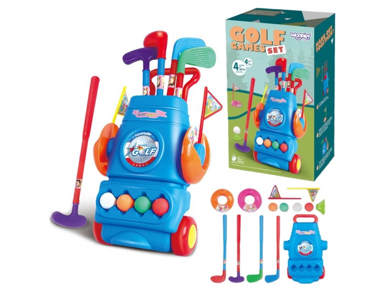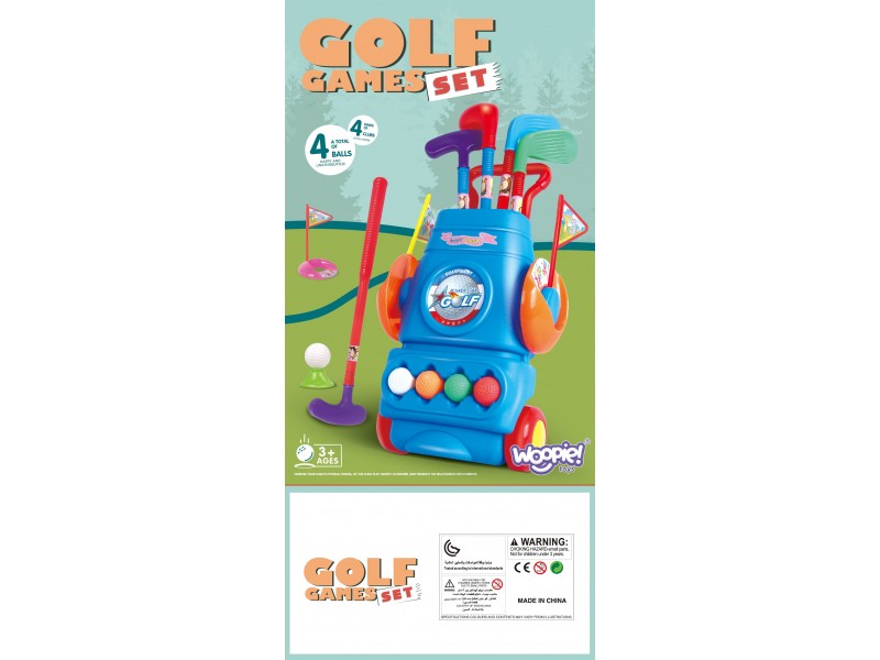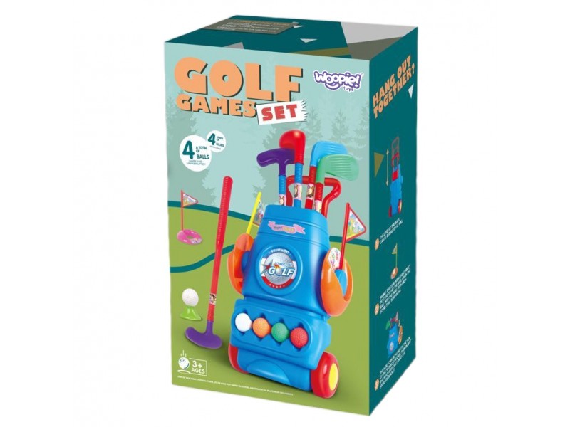 „Woopie“ golfo žaidimo rinkinys yra idealus būdas aktyviai praleisti laisvalaikį. Šis rinkinys lavina koncentraciją, refleksus, vikrumą ir tikslumą. Žaidimas pagamintas 100 % iš aukštos kokybės, netoksiško ir oro sąlygoms atsparaus plastiko, todėl tai puiki pramoga visai šeimai. Lengvai pastatomos duobutės leidžia žaisti tiek sode, tiek namuose. Produktas skirtas vaikams nuo 3 metų. Rinkinyje rasite 4 golfo lazdas, 4 skirtingų spalvų kamuoliukus bei dvi „duobutes“ su vėliavėlėmis. Visą rinkinį lengva transportuoti dėl prie vežimėlio pritvirtintų ratukų.