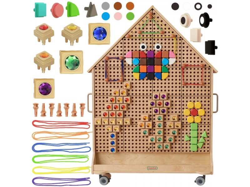 Laisvai pastatoma namelio formos STEM lenta – tai puikus būdas supažindinti vaiką su mokslo, technologijų, inžinerijos ir matematikos (STEM) pasauliu. Tai nuostabus edukacinis ir mokslinis skydas, kurį dėl įmontuotų ratukų galima lengvai perstumti į bet kurią vietą. Su šia lenta jūsų mažylis atras mechanizmų, fizikos, matematikos ir daugybės kitų įdomių dalykų pasaulį. Pridedami spalvingi kaišteliai ir įvairūs elementai leidžia vaikui kurti unikalias konstrukcijas bei nuostabius raštus, taip lavinant kūrybiškumą ir loginį mąstymą.