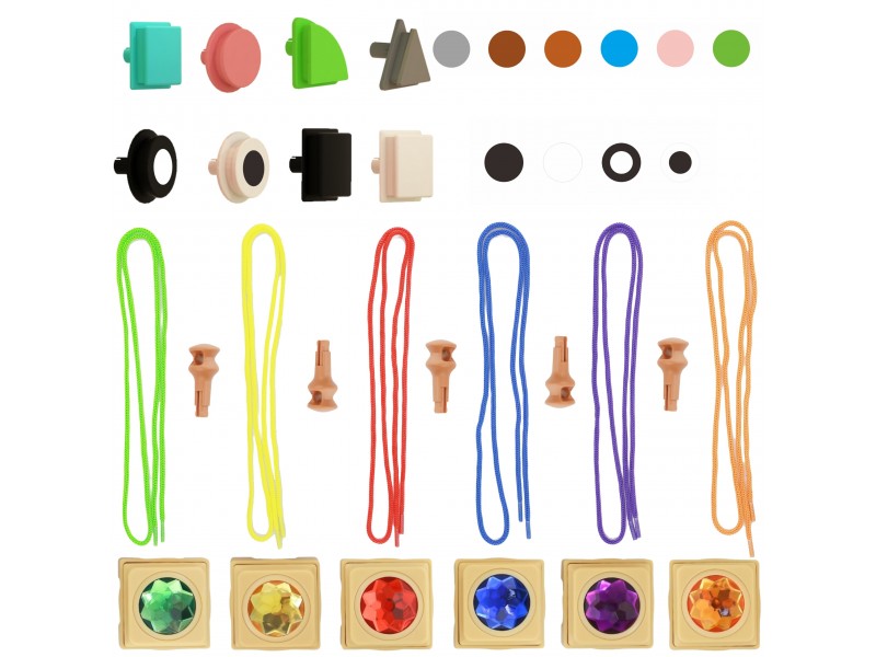 • 64 geometriniai kaišteliai (4 formos, 6 spalvos) (ME29324).