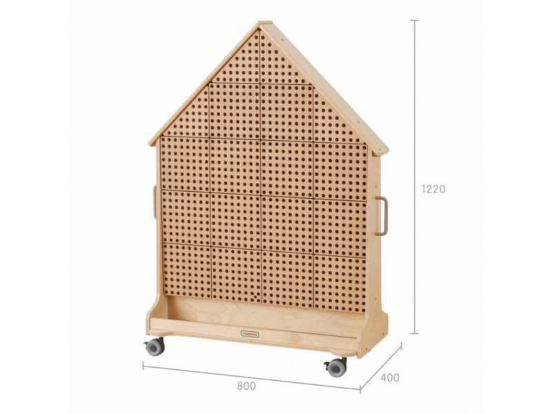 • Medinė dvipusė STEM lenta namelio formos.