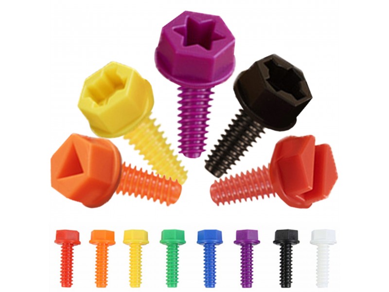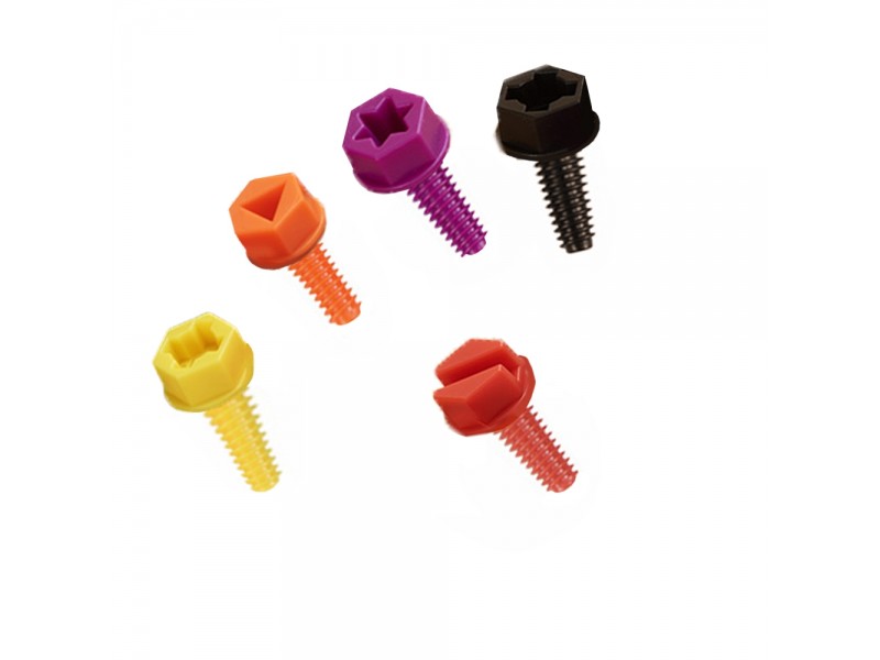 - 5 skirtingos varžtų galvučių formos: 128 vnt. su kryžmine galvute, po 96 vnt. su plokščia, trikampe, žvaigždutės ir kvadratine galvutėmis.