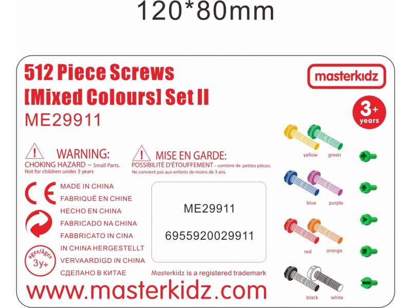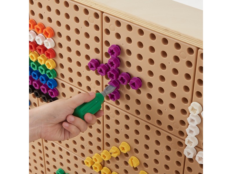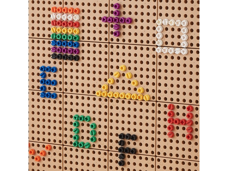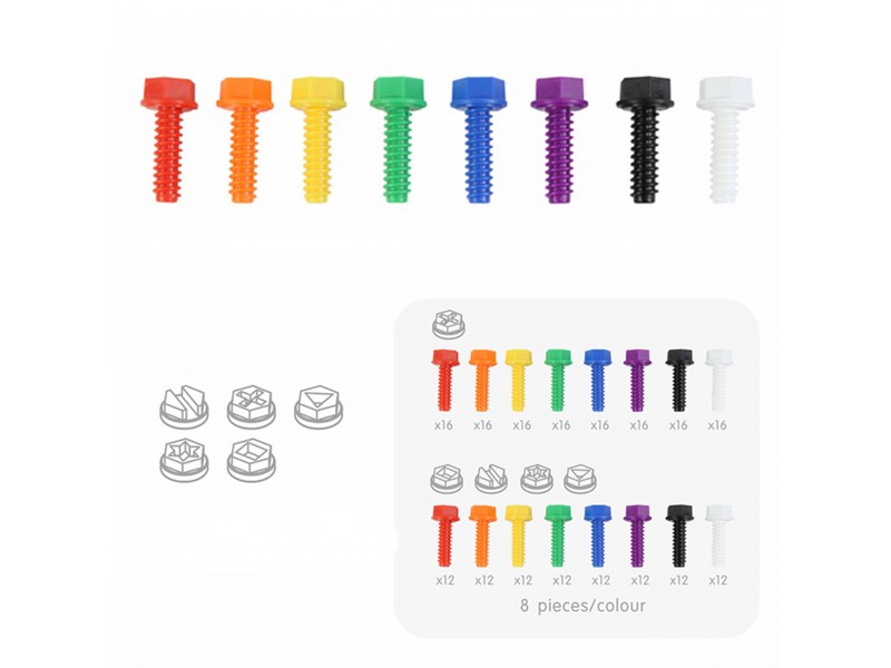 - Rinkinį sudaro net 512 spalvotų varžtų (8 skirtingų spalvų).