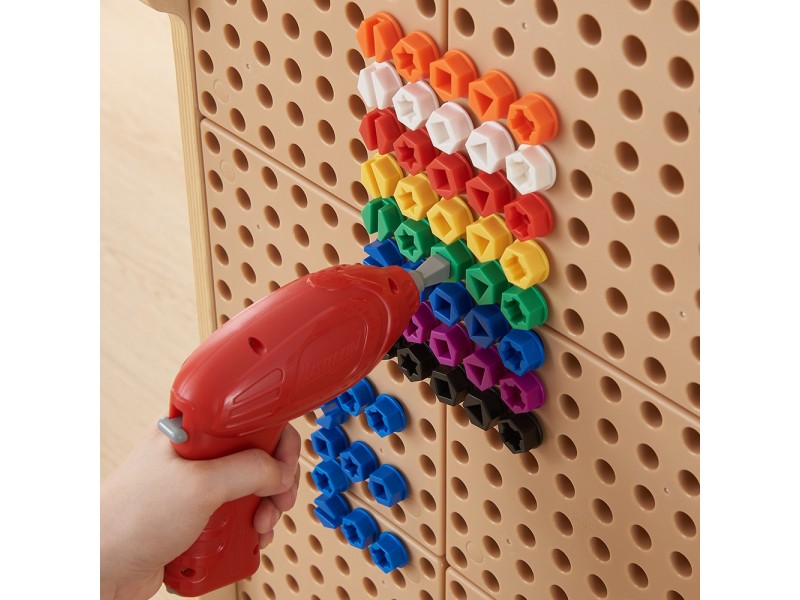 Spalvoti varžtai, skirti įsukti į medinę Masterkidz STEM edukacinę lentą, yra puikus būdas paįvairinti kūrybinę veiklą. Jūsų vaikas galės ne tik kurti nuostabius paveikslus ir ornamentus, bet ir lavinti smulkiąją motoriką. Naudodamas specialius, atskirai įsigyjamus įrankius, mažylis išmoks valdyti rankinius įrankius ir net elektrinį atsuktuvą, taip žengdamas pirmuosius žingsnius į konstravimo pasaulį.