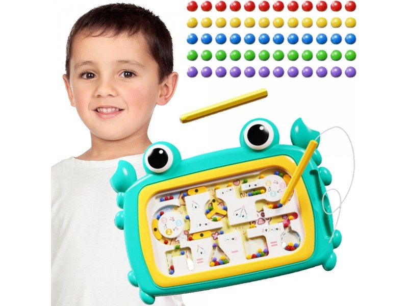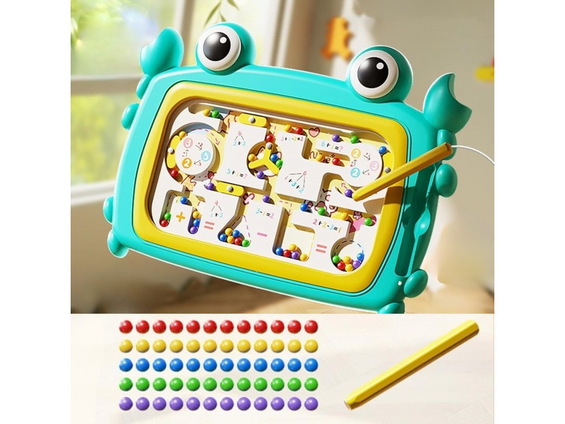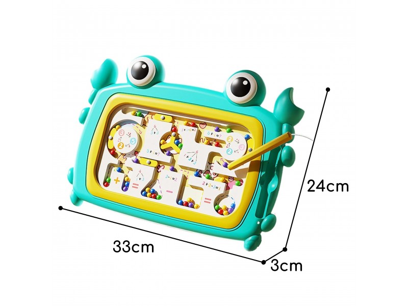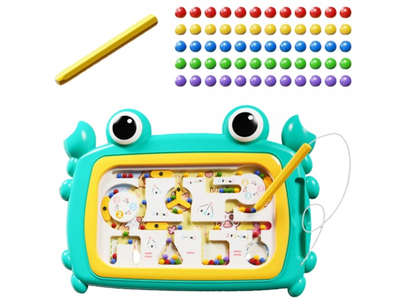 Atraskite kerintį mokslo pasaulį žaidžiant su šia žavinga, krabo formos magnetine lavinamąja lenta iš „Woopie“! Šis žaislas sukurtas specialiai ankstyvajam ugdymui, siekiant skatinti mažylių sensorinį, manualinį ir pažintinį vystymąsi. Vaikai galės mėgautis įtraukiančiomis veiklomis: rūšiuoti spalvotus rutuliukus magnetiniu rašikliu, laviruoti painiame labirinte ir mokytis taisyklingai laikyti rašymo priemonę. Dėliodami rutuliukus į specialias vietas, vaikai spręs paprastas matematines lygtis, taip sujungdami žaidimą su mokymusi. Matematikos pratimams rinkinyje rasite specialias korteles su užduotimis. Ryški turkio spalva ir miela krabo išvaizda neabejotinai patrauks kiekvieno vaiko dėmesį. Žaislas nereikalauja baterijų, o dėl kompaktiško dydžio puikiai tinka tiek namuose, tiek kelionėse.