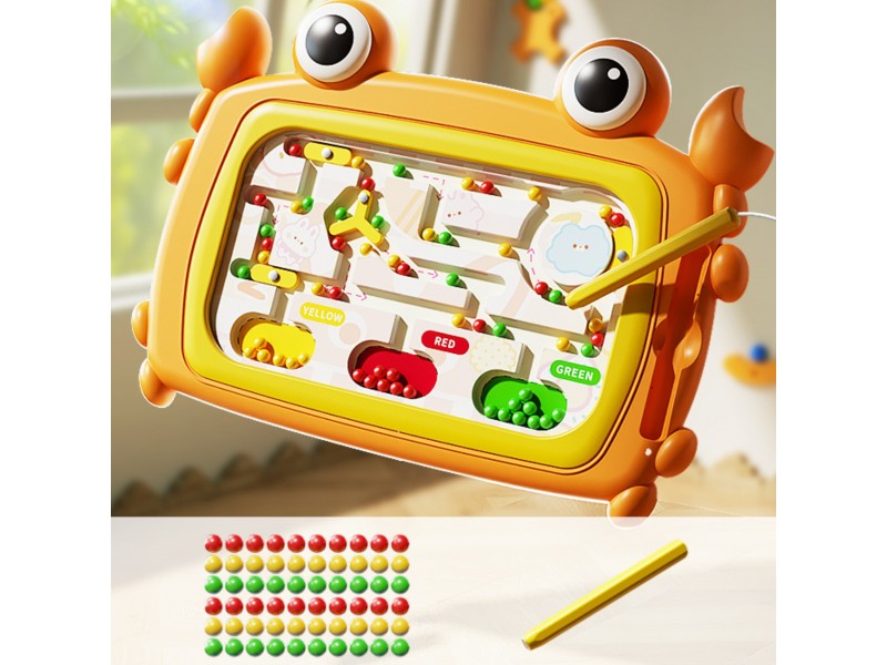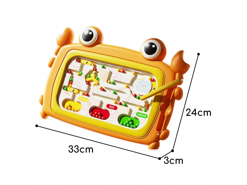 Pasinerkite į smagų mokymosi ir atradimų pasaulį su šia žavinga, krabo formos magnetine lenta iš „Woopie“! Šis lavinamasis žaislas sukurtas specialiai ankstyvajam ugdymui, siekiant skatinti mažylių sensorinį, manualinį ir pažintinį vystymąsi. Vaikai galės mėgautis įtraukiančiomis veiklomis: rūšiuoti spalvotus kamuoliukus su magnetiniu rašikliu, naviguoti juos per labirinto kelius ir mokytis taisyklingai laikyti rašymo priemonę. Lenta pagaminta iš aukštos kokybės, vaikams saugių medžiagų, todėl užtikrina ilgaamžiškumą ir komfortą net per ilgai trunkančius žaidimus. Ryški oranžinė spalva ir miela krabo forma neabejotinai patrauks kiekvieno vaiko dėmesį ir kvies žaisti. Šiam žaislui nereikia baterijų, o dėl kompaktiško dydžio jis puikiai tinka tiek namuose, tiek kelionėse.