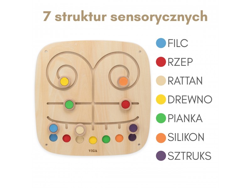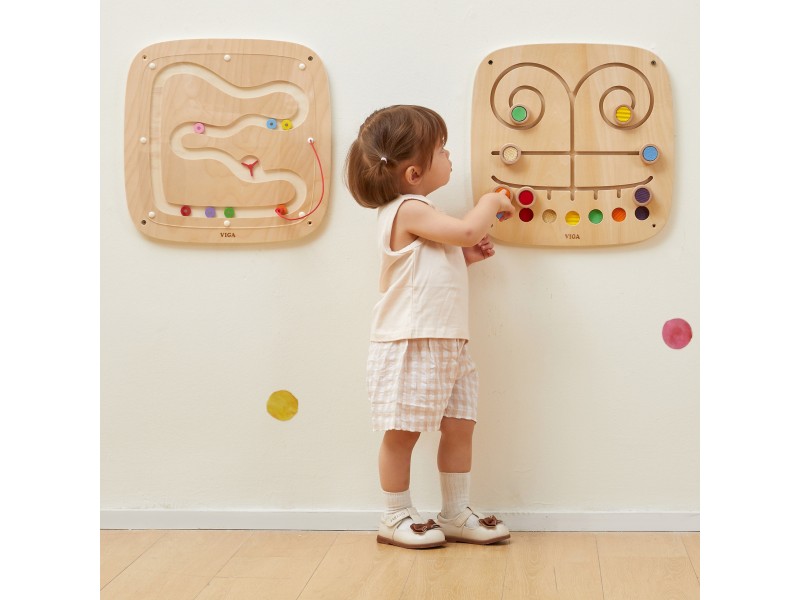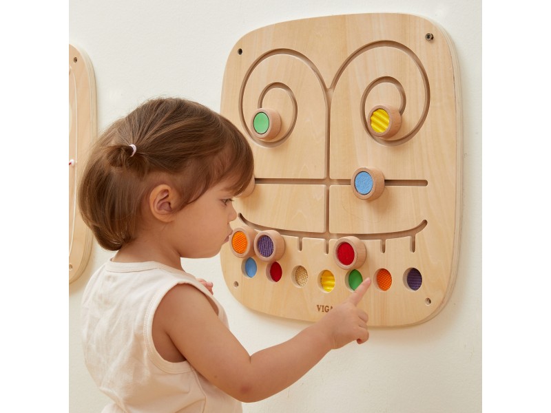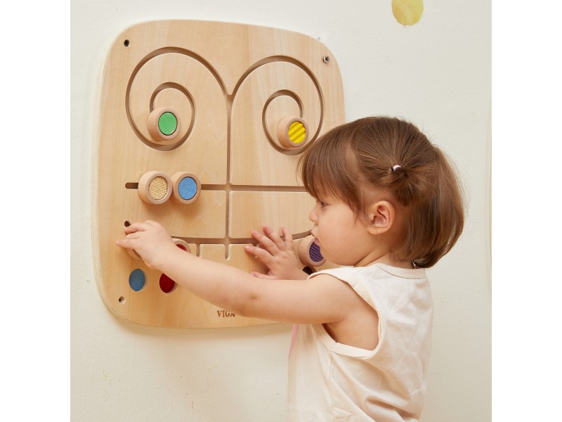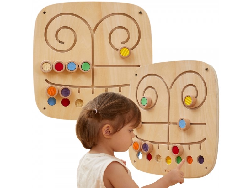 Susipažinkite su Viga sieniniu paneliu „Paliesk ir suderink“ – tai nuostabus lavinamasis žaislas, skirtas vaiko sensoriniams ir regimiesiems įgūdžiams ugdyti. Lentoje yra 7 unikalios tekstūros ir spalvos, kurias mažylis gali stumdyti labirintu, bandydamas atrasti ir suderinti poras. Šis žaidimas moko atpažinti ir skirti skirtingus paviršius, lavina pažintinius gebėjimus, ugdo sensorinį suvokimą ir gerina koncentraciją. Medinis panelis taps puikia žaidimų kampelio dalimi vaiko kambaryje, darželyje ar lopšelyje. Leiskite vaikui tyrinėti jį supantį pasaulį per pojūčius – šis žaislas užtikrins ilgas valandas įtraukiančio mokymosi ir žaidimo, o tvirta konstrukcija garantuos ilgaamžiškumą ir saugumą.