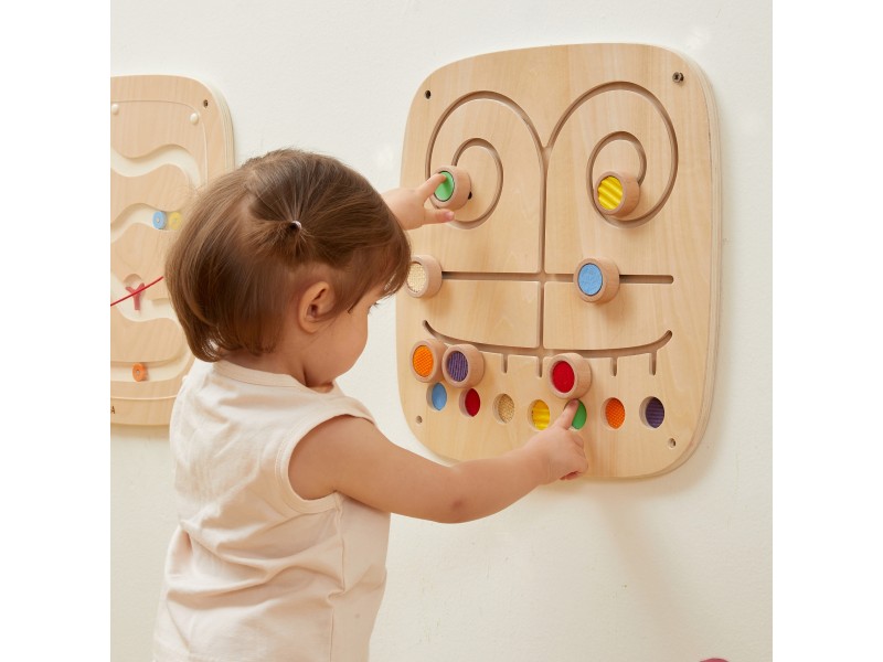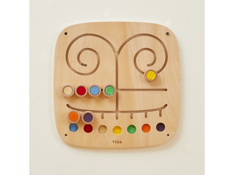- Medinė sieninė lenta su labirintu ir 7 skirtingomis tekstūromis.
