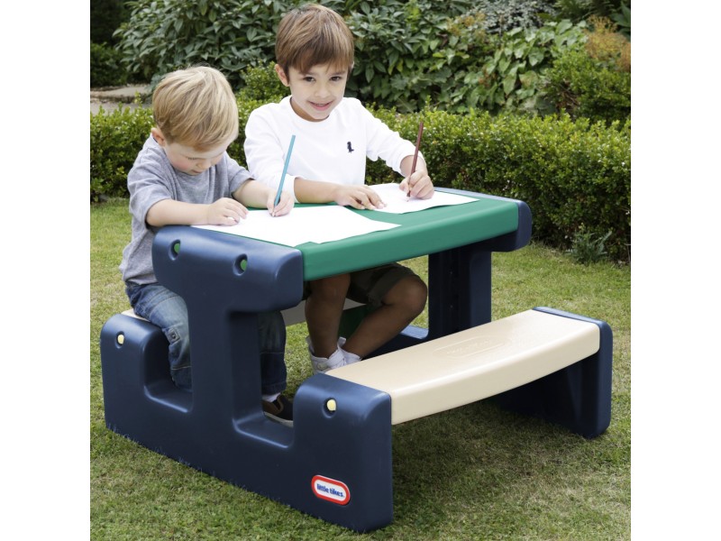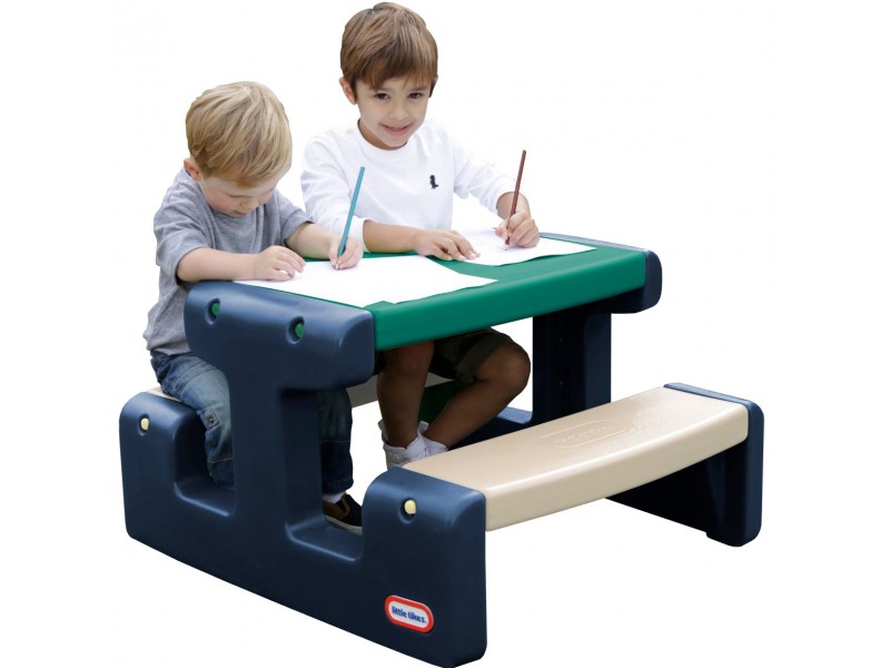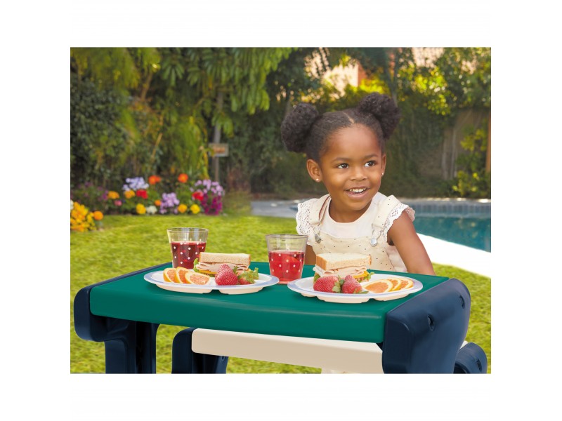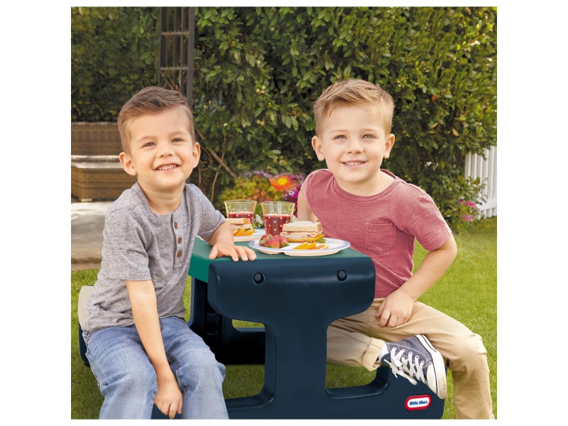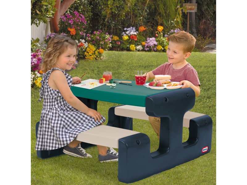 Mėlynai žalias iškylų staliukas, sukurtas vertinamo žaislų gamintojo Little Tikes, idealiai tinka žaidimams tiek namuose, tiek sode. Tai vientisos konstrukcijos stalas, turintis patogias raudonas sėdynes bei užapvalintus ir lygius kraštus, užtikrinančius vaikų saugumą. Jis puikiai tinka atlikti įvairias užduotis, pavyzdžiui: lipdyti, piešti, karpyti ar valgyti. Prie stalo vienu metu gali sėdėti keturi vaikai. Jį ypač lengva valyti ir prižiūrėti.