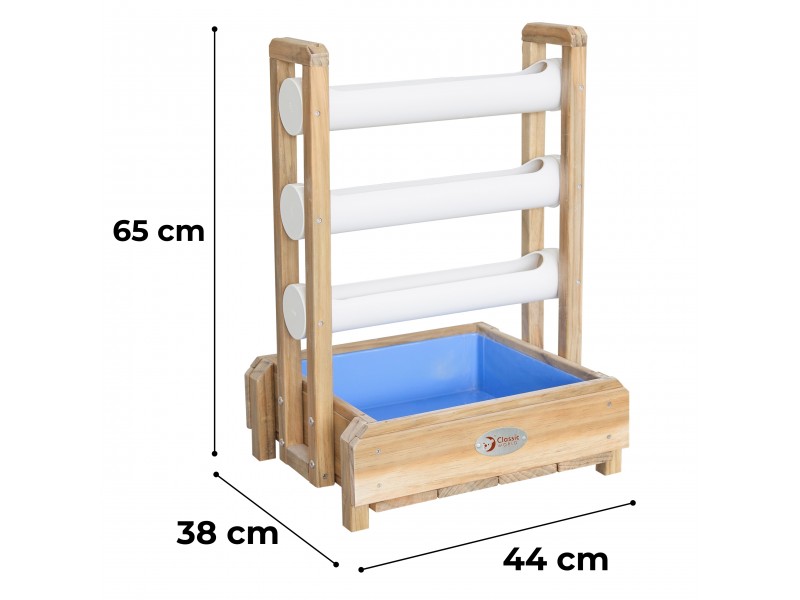 Atraskite vandens magiją su šiuo nuostabiu mediniu žaislu nuo garsaus prekės ženklo „Classic World“. Pagamintas iš aukščiausios kokybės, ilgaamžės medienos ir padengtas netoksišku impregnantu, šis žaislas yra visiškai saugus jūsų vaikui. Tiesiog pripildykite viršutinį lataką vandeniu ir stebėkite, kaip jis kaskadomis teka žemyn, sukurdamas žavų mini krioklį ir baseinėlį. Tai puikus būdas skatinti vaikų smalsumą, lavinti vaizduotę ir loginį mąstymą karštomis vasaros dienomis.