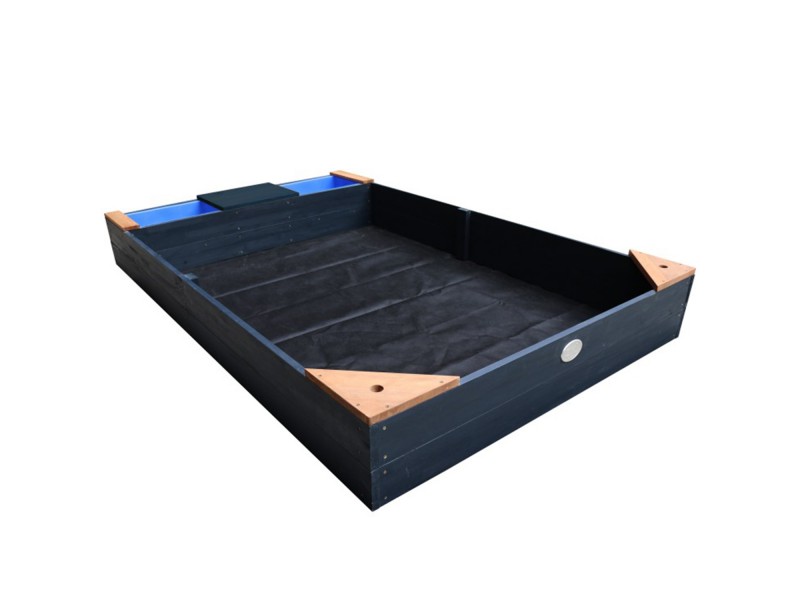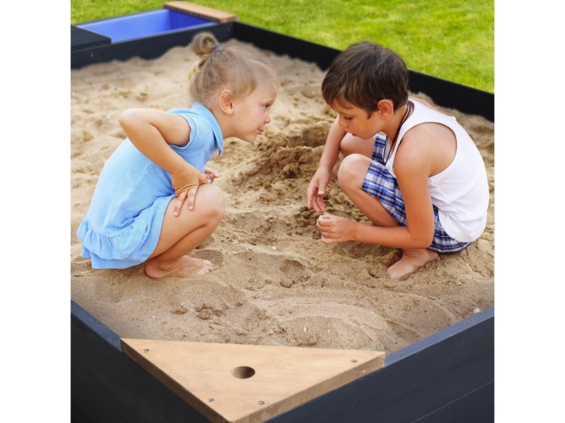 Ši didelė ir funkcionali „Kelly“ serijos medinė smėliadėžė iš AXI pavers jūsų kiemą tikra žaidimų aikštele. Tai solidus gaminys, pagamintas iš sertifikuotos Hemlock medienos (FSC), kuri pasižymi patvarumu ir atsparumu. Smėliadėžė yra itin praktiška – joje įrengti du išimami indai, kuriuos galima naudoti vandeniui arba smėliui, patogus suoliukas su daiktadėže žaislams bei kampinės sėdynės su specialia vieta skėčiui nuo saulės įstatyti. Komplekte taip pat rasite apsauginį dangtį, kuris padės išlaikyti smėliadėžę švarią, kai ji nenaudojama, bei dugno tiesalą, apsaugantį smėlį nuo piktžolių.
