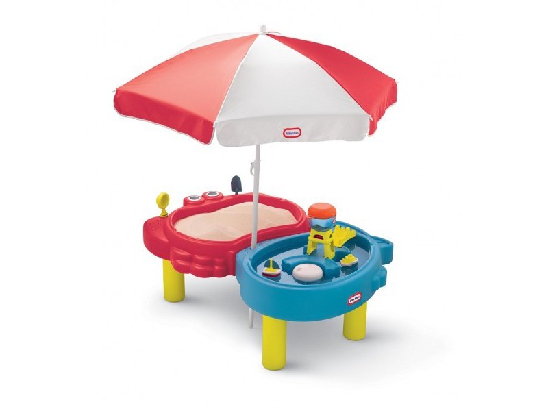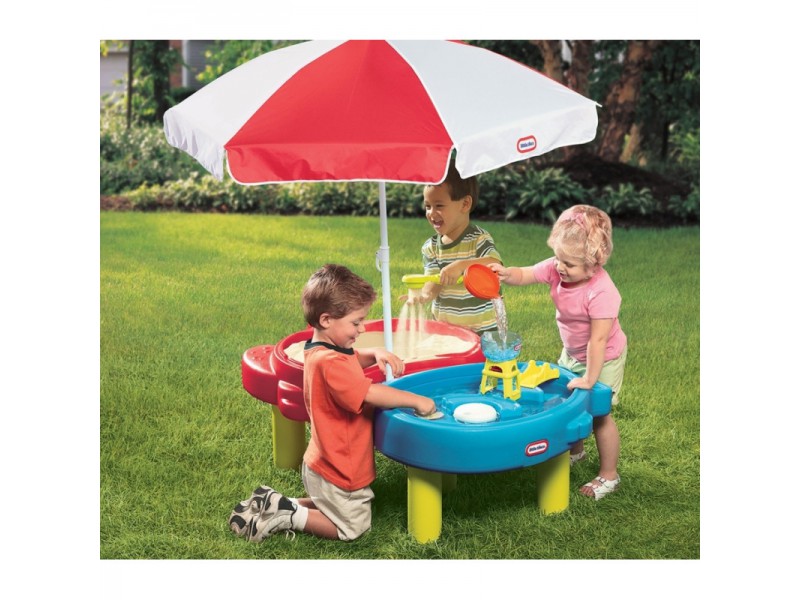 - Little Tikes vaikiškas daugiafunkcis veiklos stalas su dangčiu ir skėčiu patiks vaikams mėgstantiems žaisti su vandeniu ir smėliu.