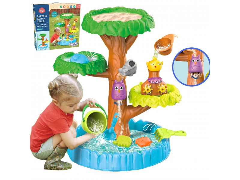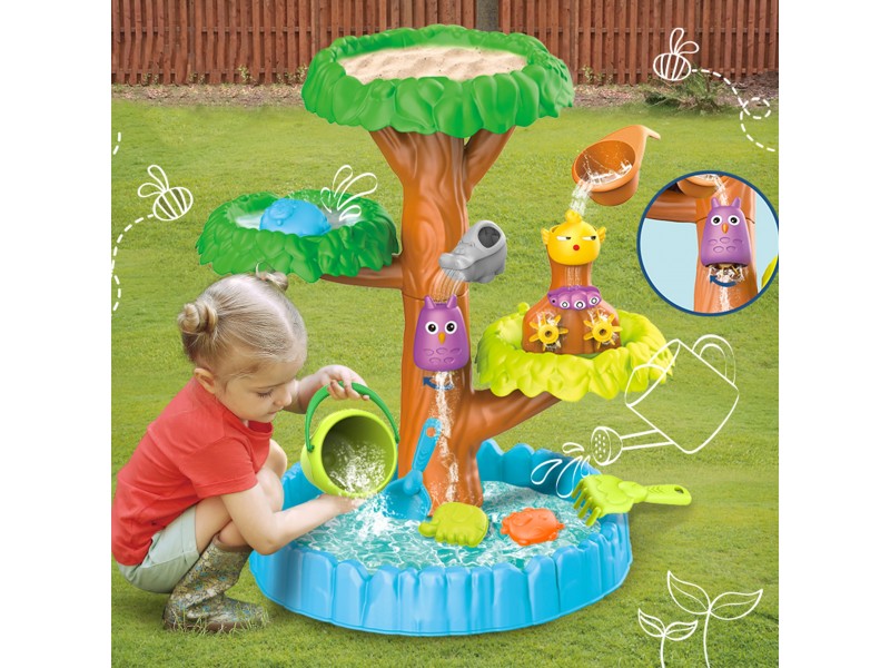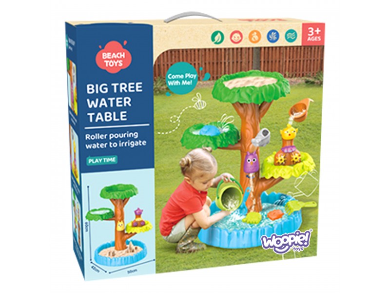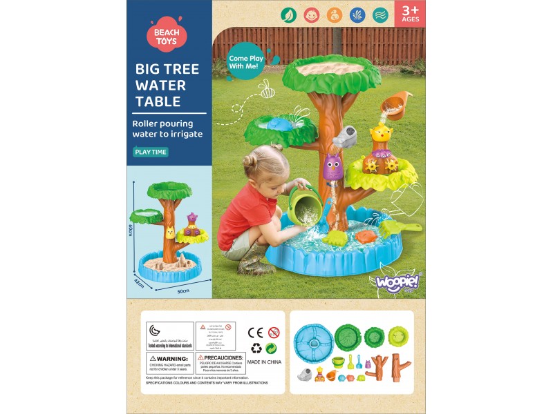 WOOPIE prekės ženklo 4 lygių vandens staliukas medžio formos yra puikus pasirinkimas žaidimams su vandeniu ir smėliu. Rinkinyje yra viskas, ko reikia nesibaigiančioms pramogoms – sulankstomas staliukas, kibirėlis, piltuvėlis, 3 formelės, 2 kastuvėliai, laistytuvas. Jūsų vaikas galės pilti vandenį į įvairius gyvūnėlius, dėl ko krumpliaračiai pradės suktis, suteikdami dar daugiau džiaugsmo šiam nuostabiam užsiėmimui. Žaislas skirtas žaisti lauke: paplūdimyje, sode arba smėlio dėžėje.