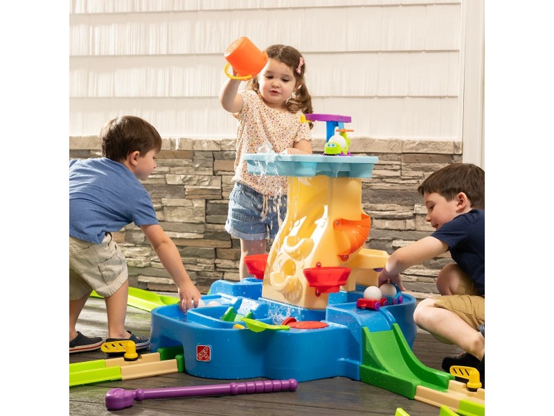 Suteikite savo vaikui daugybę aktyvių pramogų su vandens stalu, turinčiu įmontuotą mini golfo trasą, kurį sukūrė prekės ženklas Step2! Šis rinkinys garantuoja valandų valandas džiaugsmo saulėtomis dienomis, skatindamas vaiko fizinį aktyvumą ir tuo pačiu suteikdamas malonią atgaivą. Vaikai gali bet kaip tvirtinti trasas prie stalo, kaskart keisdami jų išdėstymą. Kuriant vis naujus maršrutus, žaidimas niekada nepabos. Jaunesni vaikai galės treniruoti taiklumą, o vyresni – tobulinti savo techniką didindami užduočių sudėtingumą. Atvira 360 laipsnių konstrukcija leidžia prieiti prie stalo iš bet kurios pusės, todėl tai idealus pasirinkimas bendriems žaidimams didesnėje draugų kompanijoje.