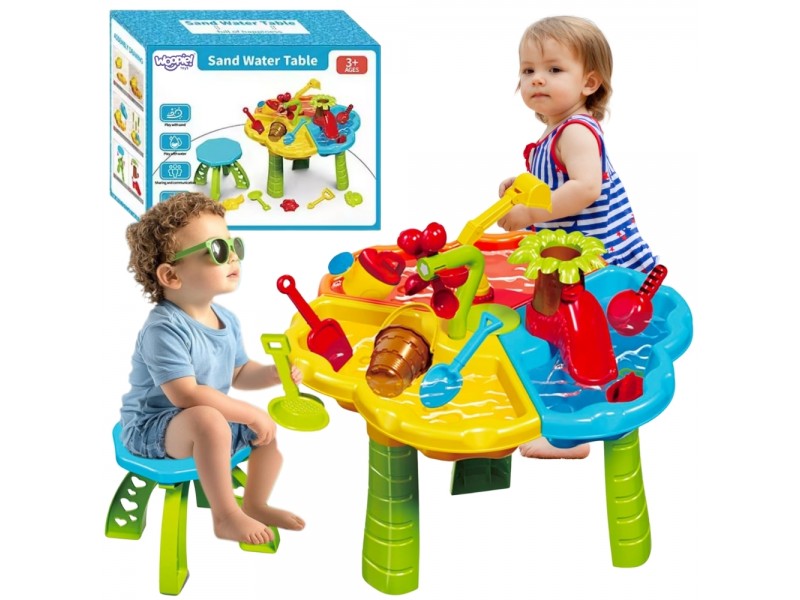 Vandens staliukas ir smėlio dėžė 2in1 | su kėdute | WOOPIE 55723