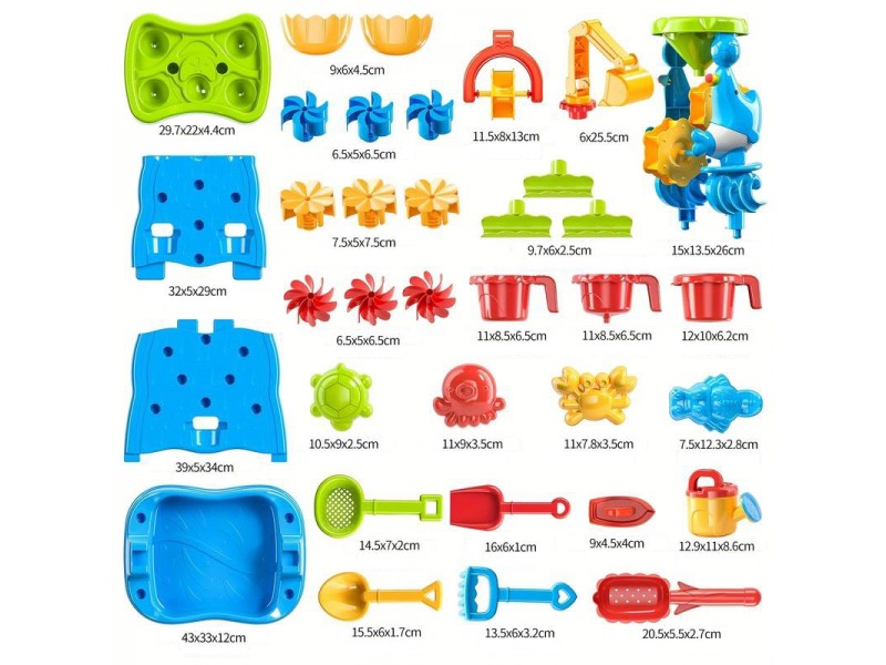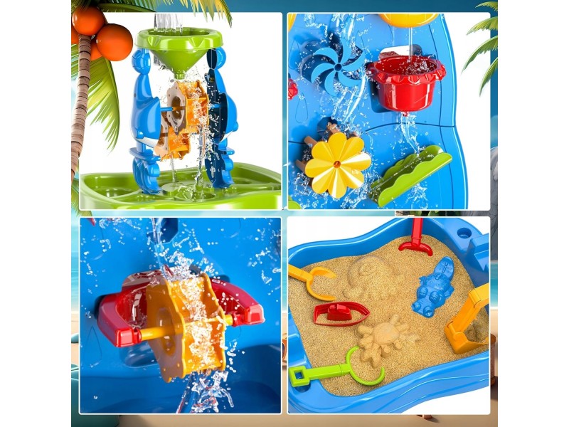 • Vanduo išjudina malūnėlius, ratus ir indelius, užtikrindamas dinamišką ir įtraukiantį žaidimą.