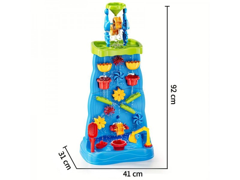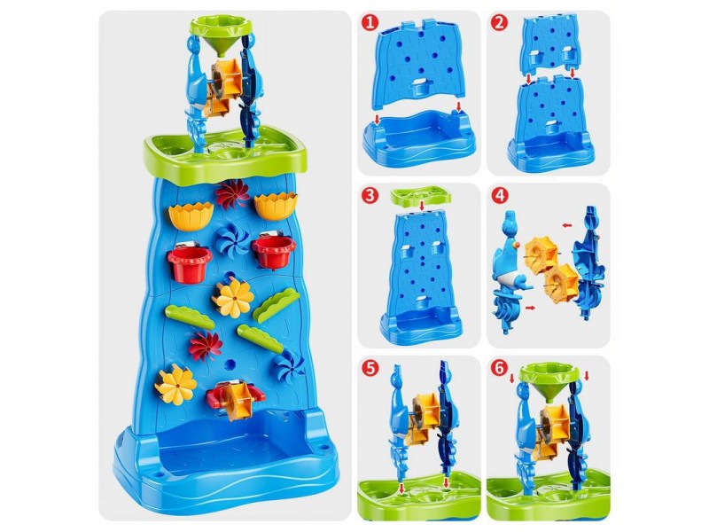 „Woopie“ prekės ženklo dvipusė vandens siena yra išskirtinis žaislas, kuris pavers bet kurį sodą ar paplūdimį juoko ir kūrybingų pramogų kupina vieta. Daugybės spalvingų priedų, judančių malūnėlių ir indelių dėka vaikai gali eksperimentuoti su vandeniu bei smėliu, tuo pačiu lavindami savo rankų įgūdžius ir vaizduotę. Paprasta konstrukcija ir dideli matmenys užtikrina, kad žaislas būtų patogus ir patrauklus žaisti net keliems vaikams vienu metu.