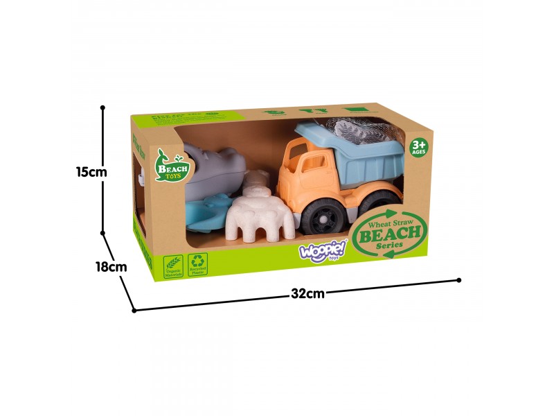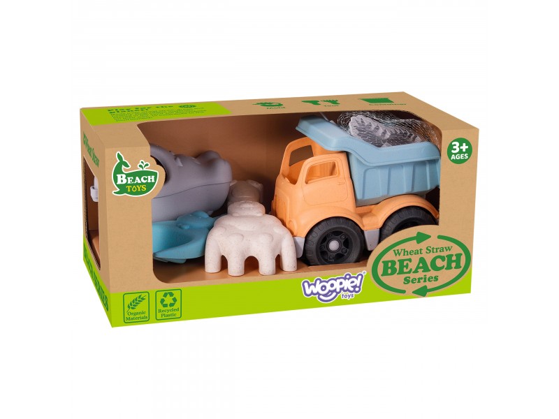 \nPrekės ženklo Woopie smėlio žaislų rinkinis iš GREEN serijos yra puikus pasirinkimas smagiems žaidimams smėliadėžėje, paplūdimyje ar sode. Šį rinkinį sudaro 7 elementai: mielas begemoto formos laistytuvas, 3 smėlio formelės, kastuvas, grėblys ir mašinėlė. Žaislai išsiskiria madingiausiu pasteliniu dizainu ir yra pagaminti iš organinės bei biologiškai skaidžios medžiagos. Produktas yra tinkamas kompostavimui ir visiškai saugus vaikams – gamybos metu dezinfekuojamas 120 laipsnių temperatūroje. Tai puikus būdas užtikrinti džiaugsmingą laiką lauke ir kartu rūpintis gamta.