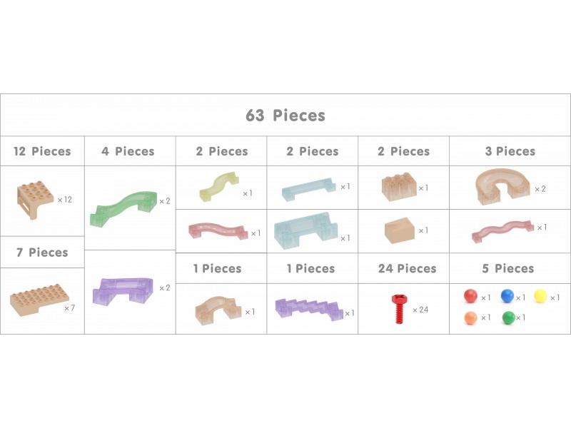 • Rinkinį sudaro net 63 įvairios detalės.