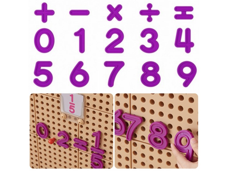 Šis išsamus 82 elementų skaičių ir matematinių ženklų rinkinys yra nepakeičiama priemonė, padedanti vaikams žengti pirmuosius žingsnius į matematikos pasaulį. Rinkinį sudaro 40 skaičių ir įvairūs matematiniai simboliai, leidžiantys kurti ir spręsti paprastas aritmetines užduotis. Elementai yra patogaus dydžio, todėl mažiesiems bus lengva juos paimti ir dėlioti, o ryški violetinė spalva patrauks kiekvieno vaiko dėmesį. Šis komplektas idealiai tinka naudoti su Masterkidz STEM lavinamosiomis sienelėmis, skatinant skaičiavimo įgūdžius, skaičių atpažinimą ir pagrindinių matematinių veiksmų – sudėties, atimties, daugybos bei dalybos – supratimą. Tai puikus įrankis, padedantis ugdyti jaunuosius matematikus!