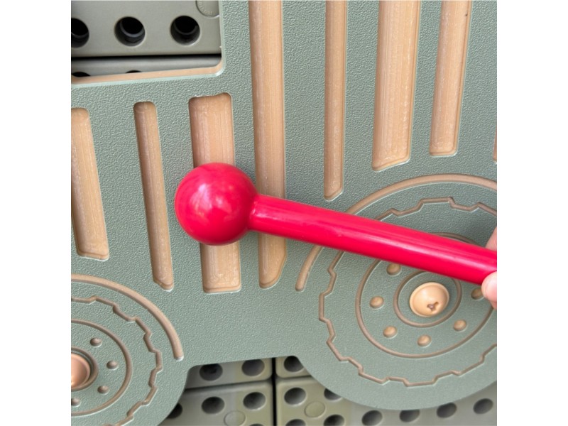 Paverskite nuobodžią sieną interaktyvia filharmonija! Šis žavingas muzikinis traktorius, skirtas STEM mokslo lentai, yra novatoriškas guiro tipo perkusinis instrumentas, kuris pradžiugins kiekvieną mažąjį garsų tyrinėtoją. Vaikas gali kurti savo ritmus, braukdamas lazdele per specialius griovelius traktoriaus šone. Rinkinys sukurtas taip, kad būtų ilgaamžis, todėl puikiai tiks tiek vaikų kambaryje, tiek lauko žaidimų aikštelėje, nes yra atsparus įvairioms oro sąlygoms. Tai puiki investicija į vaiko sensorinį vystymąsi, jungianti estetišką dizainą su įdomia garso fizikos pamoka.