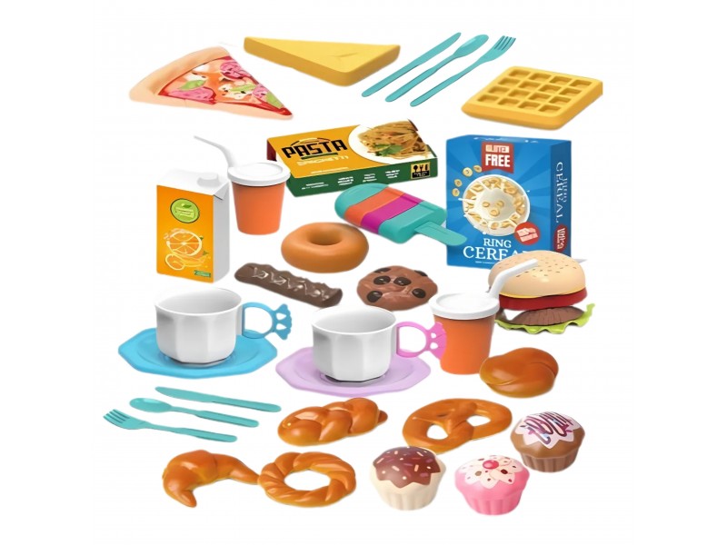- Komplekte rasite įvairių saldumynų, desertų, pusryčių maisto produktų imitacijų bei arbatos ir kavos serviravimo indų.