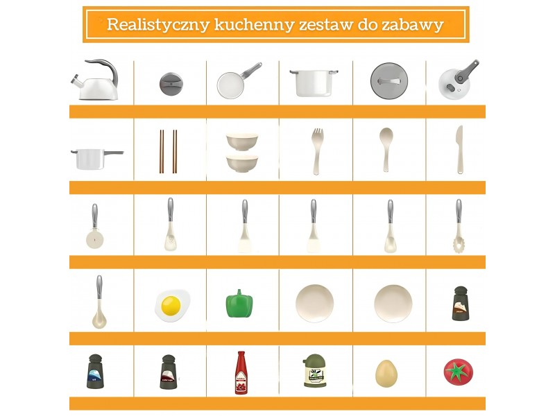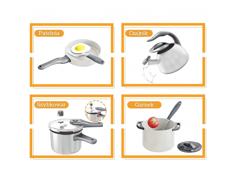 Šis gausus virtuvės žaidimų rinkinys iš „Woopie“ prekės ženklo – tai tobula dovana kiekvienam mažajam kulinarijos entuziastui! Žaislas suteikia vaikams galimybę mėgdžioti suaugusiuosius ir pasinerti į vaidmenų žaidimus, taip lavinant jų kūrybiškumą, vaizduotę bei motorinius įgūdžius. Rinkinyje rasite viską, ko prireiks svajonių patiekalui paruošti. Jame gausu detalių: daugybė indų, puodų, keptuvė ir net virdulys, pagaminti atidžiai ir kruopščiai. Papildomi priedai, tokie kaip stalo įrankiai, daržovės, keptas kiaušinis ir prieskoniai, paverčia žaidimą nepaprastai tikrovišku ir įtraukiančiu. Tai puikus būdas mokytis žaidžiant, ugdyti socialinius įgūdžius ir smagiai leisti laiką kartu su tėvais.