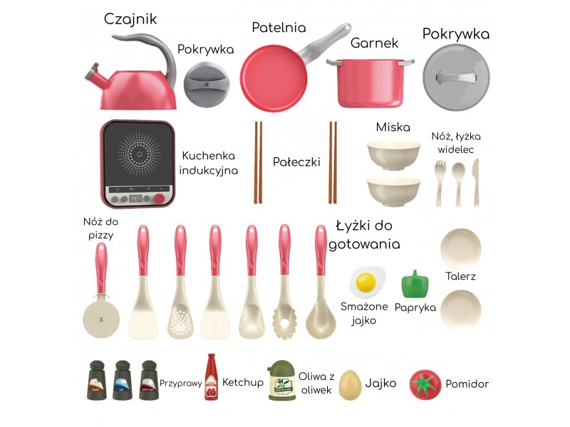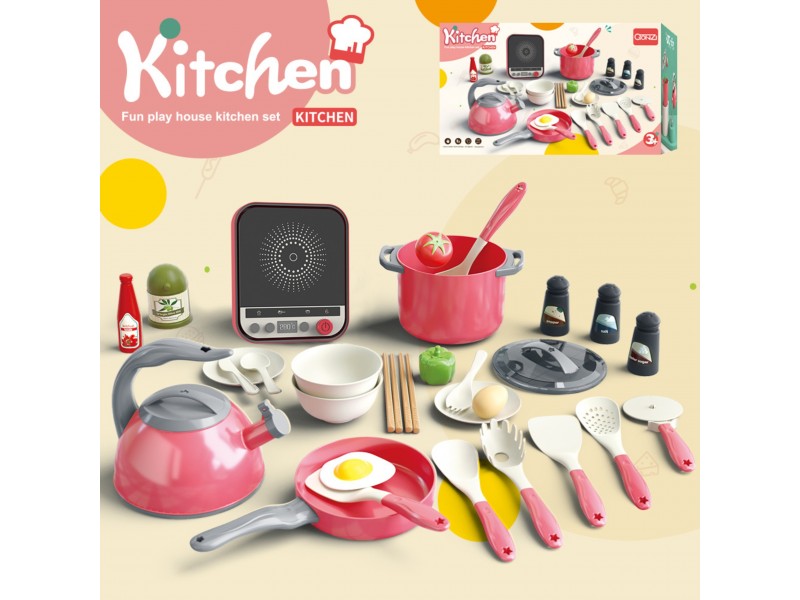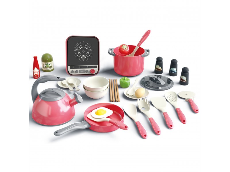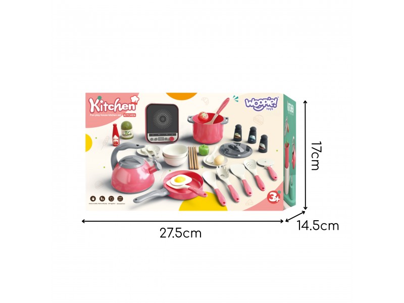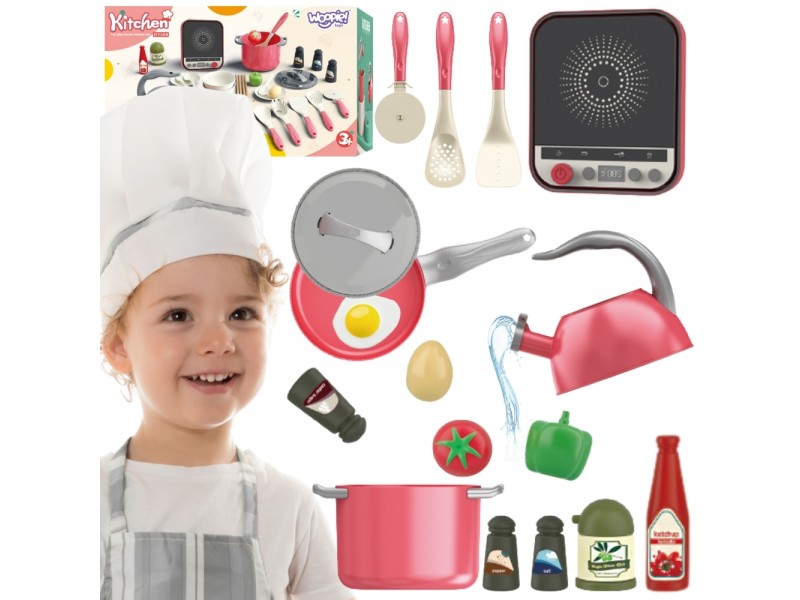 Mažojo virėjo rinkinys | Rožinis su indukcine kaitlente 30 vnt. | Woopie 56515
