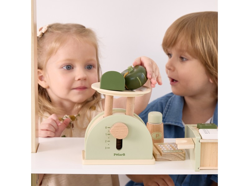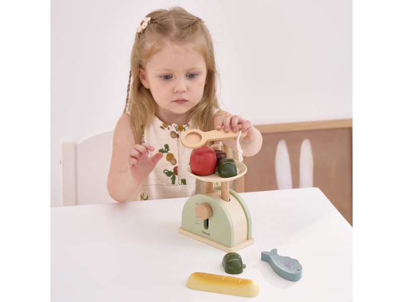 PolarB medinės virtuvinės svarstyklės yra puikus lavinamasis žaislas mažiesiems, supažindinantis vaikus su svorio ir skaičių sąvokomis. Dėl judančios svirties vaikas gali stebėti, kaip balansuojami skirtingi daiktai, ir taip suprasti pagrindinius fizikos dėsnius. Šios medinės svarstyklės yra idealus palydovas žaidžiant parduotuvę ar virtuvę, sujungiantis mokymąsi su malonumu ir suteikiantis vaikui daugybę valandų edukacinės veiklos.