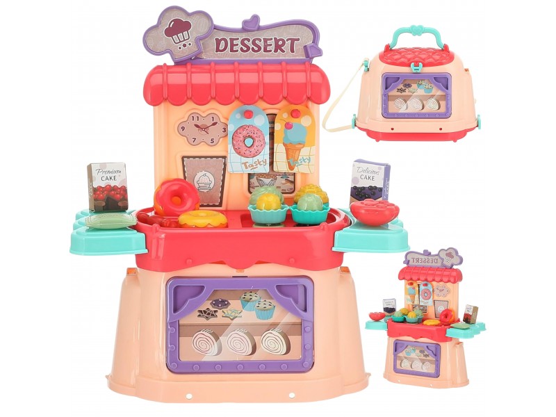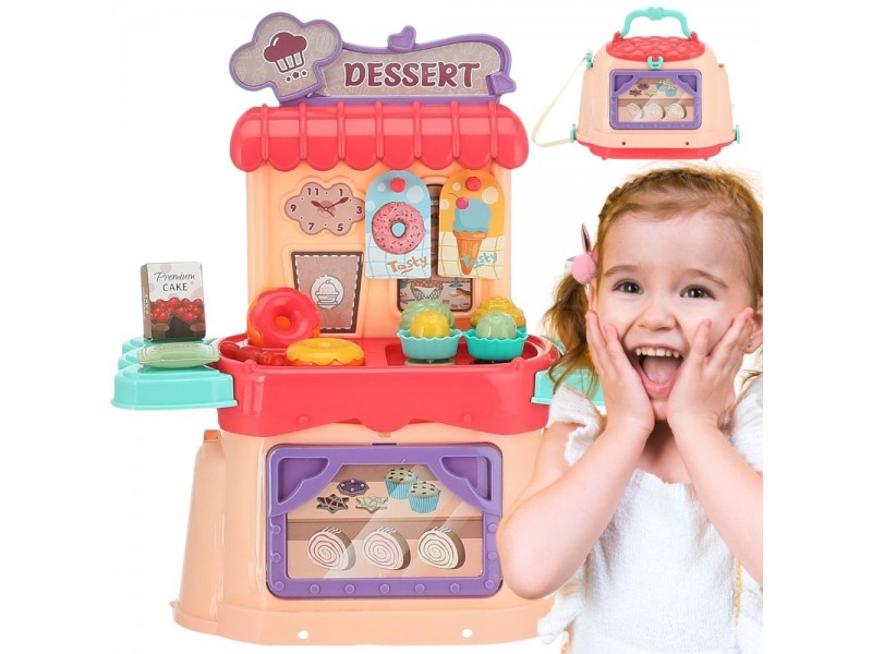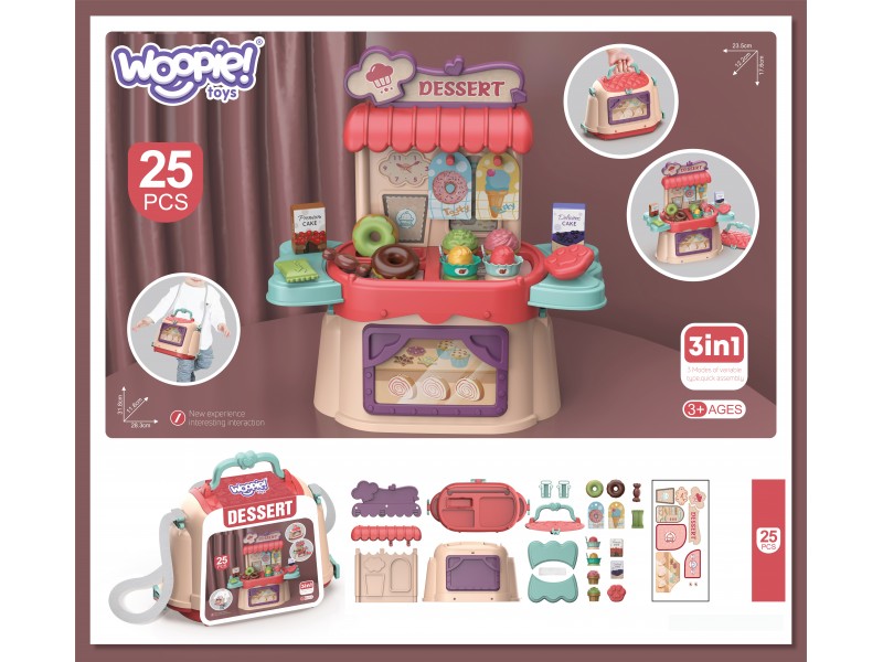 WOOPIE prekės ženklo mažojo konditerio rinkinys 3in1 leis jūsų vaikui pasijausti tikru virtuvės šefu, pardavėju ar ledų gamintoju kur tik panorėjus! Vaikai mėgsta padėti tėvams virtuvėje ir žaisti parduotuvę su draugais, todėl tai tobulas rinkinys kiekvienam mažyliui. Rinkinį sudaro 25 elementai – viskas, ko reikia tikrai ledainei. Žaislas atlieka lagamino funkciją, kurį galima lengvai paversti patogia rankine. Tai leidžia nešiotis savo mobiliąją ledainę visur, kur tik vaikas keliauja. Vaidmenų žaidimai ir profesijų mėgdžiojimas padeda ugdyti vaiko vaizduotę bei kūrybiškumą.