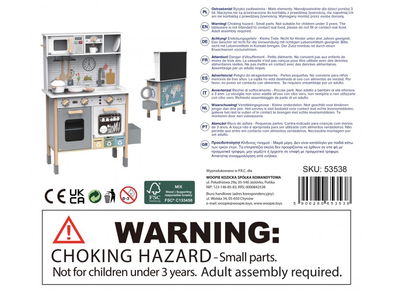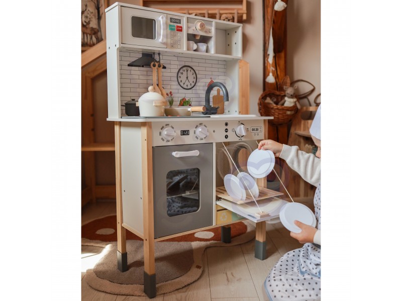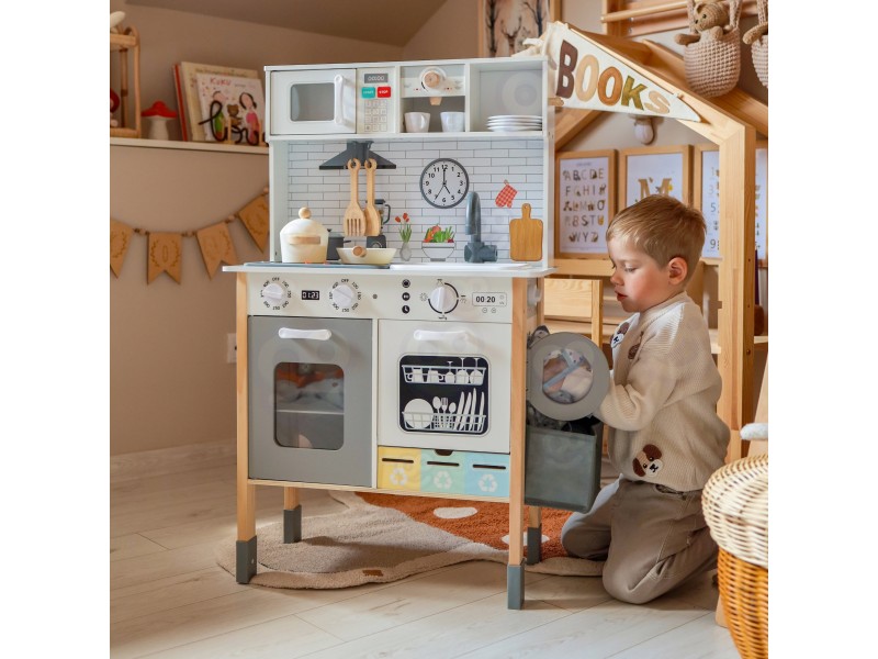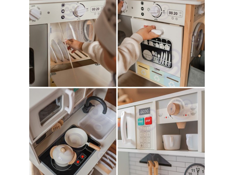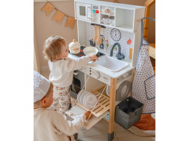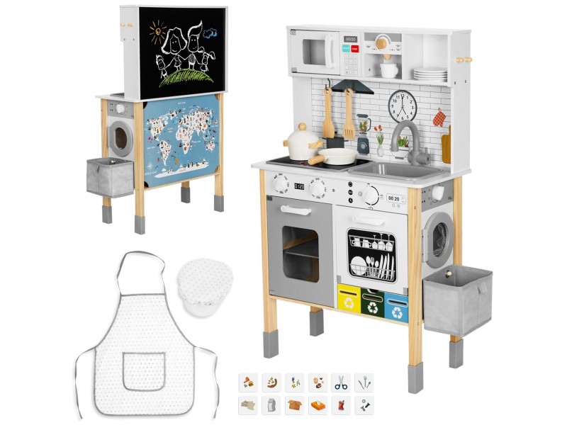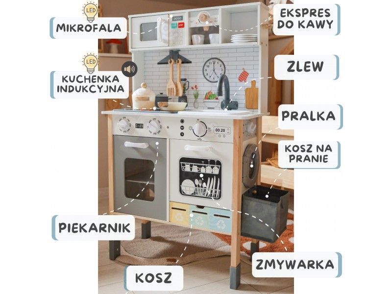 Medinė interaktyvi virtuvėlė 9in1 | su skalbimo mašina ir lenta | WOOPIE 53538