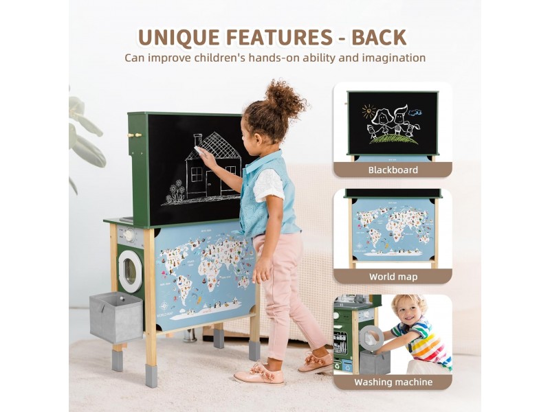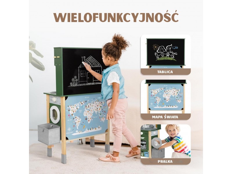 WOOPIE GREEN medinė interaktyvi virtuvė 9in1 su skalbimo mašina ir lenta