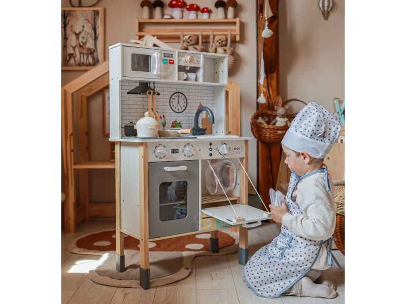 Atraskite maisto gaminimo džiaugsmą su „Woopie Green“ daugiafunkce medine virtuvėle 9in1! Šis išskirtinis žaidimų rinkinys sukurtas smalsiems ir kūrybingiems mažiesiems virėjams, svajojantiems apie nuosavą kulinarinę erdvę. Sujungdamas net 9 skirtingas funkcijas, šis žaislas ne tik suteiks begalę džiaugsmo, bet ir taps puikia lavinamąja priemone, mokančia kasdienių įgūdžių žaidimo forma. Idealiai tinka vaikų kambariui, žaidimų erdvei ar darželiui.