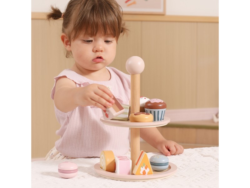 Pakvieskite savo mažylį į smagų kavinės žaidimų pasaulį! Ši elegantiška, dviejų aukštų „Viga PolarB“ tortinė su spalvingais saldumynais paįvairins kiekvieną arbatos gėrimo popietę. Komplekte rasite net 10 žavingų, įvairių formų ir spalvų pyragaičių bei torto gabalėlių. Žaislas pagamintas iš saugių, netoksiškų medžiagų, o jo nugludinti kraštai ir idealus dydis pritaikyti mažoms vaiko rankytėms. Tai ne tik linksma pramoga, bet ir puikus būdas skatinti vaiko vaizduotę, kūrybiškumą ir socialinius įgūdžius.