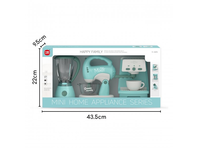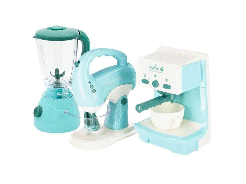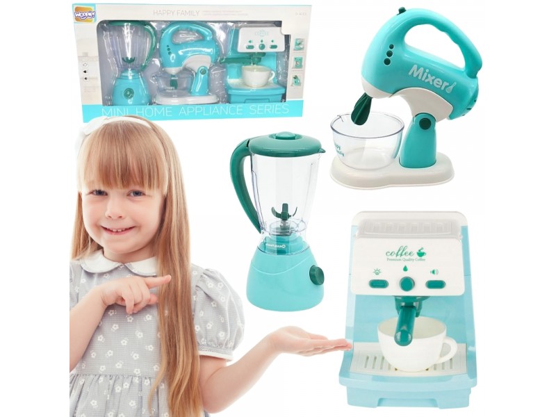 Woopie žaislinis virtuvės prietaisų rinkinys 3in1: kavos aparatas, mikseris ir plaktuvas
