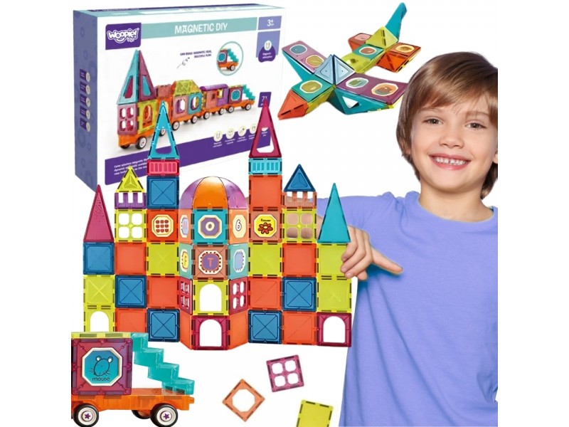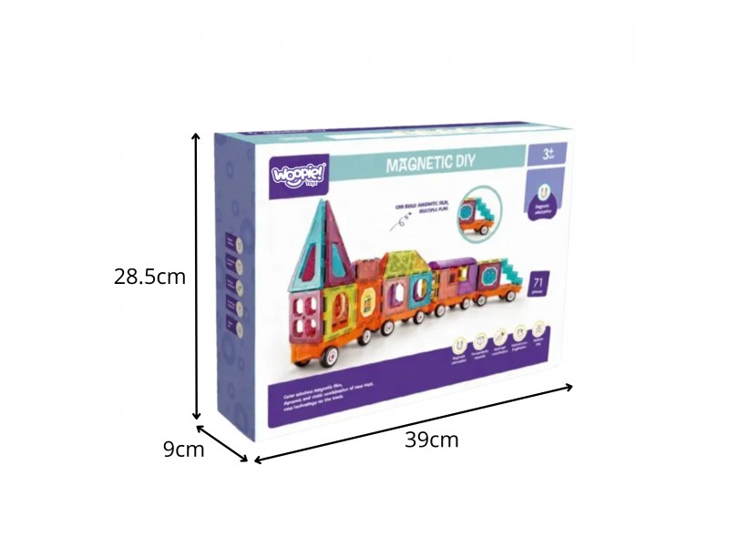 Leiskitės į kūrybinę kelionę su šiuo išskirtiniu „Woopie“ magnetiniu konstruktoriumi! Šis 71 detalės rinkinys yra puikus žaislas, skirtas kurti įvairiausias transporto priemones, pradedant spalvingu traukiniu su vagonais. Dėl integruotų magnetų kaladėlės susijungia itin paprastai ir magiškai, leisdamos vaikui laisvai konstruoti ir įgyvendinti savo idėjas. Tai ne tik smagus žaidimas, bet ir puiki priemonė lavinti erdvinį mąstymą bei rankų įgūdžius. Be to, šis konstruktorius yra idealus pirmas žingsnis į STEAM pasaulį, kuriame mokslas sujungiamas su kūrybiškumu.