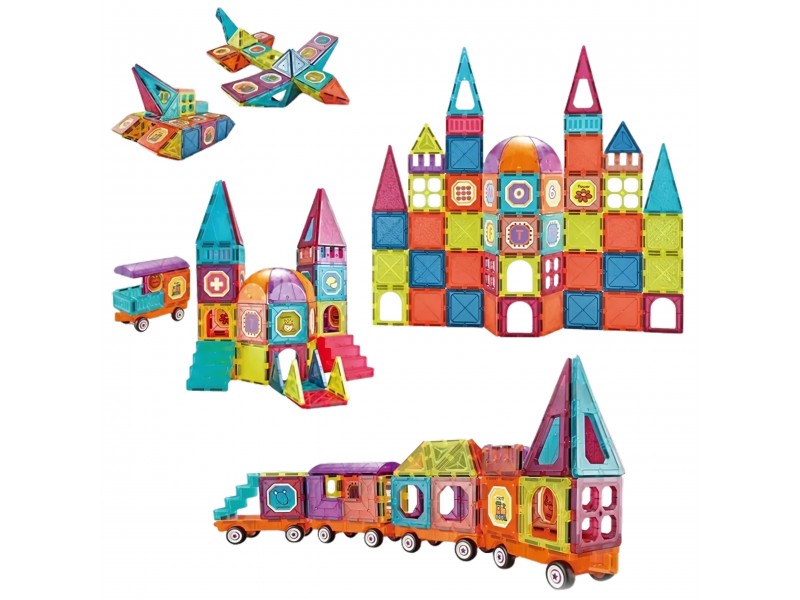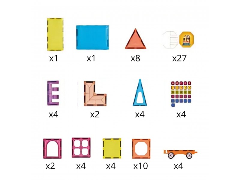 • Rinkinį sudaro net 71 elementas, įskaitant magnetines plokšteles, ratukus ir figūrėles.