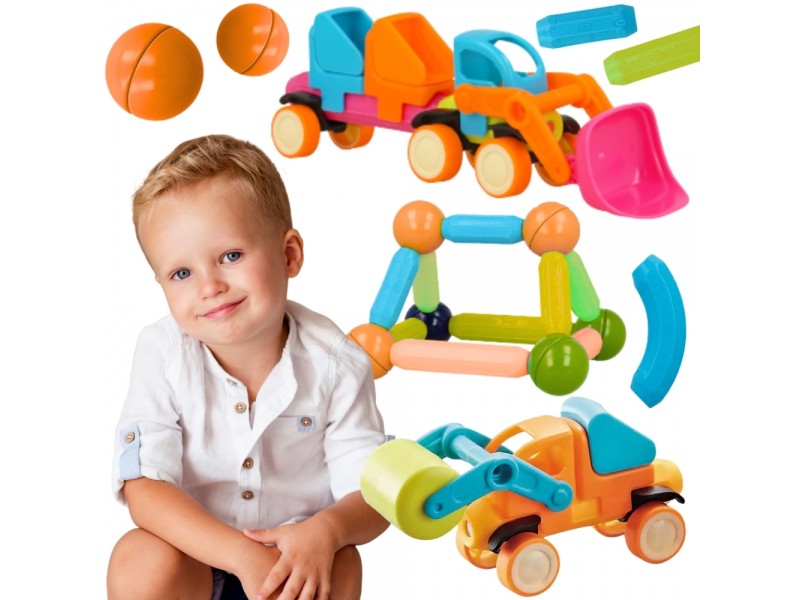 Atraskite kerintį magnetinių pramogų pasaulį su šiuo WOOPIE prekės ženklo konstruktoriumi! Rinkinys, kurį sudaro net 52 spalvingos magnetinės dalys, leis jūsų vaikui kurti neribotą kiekį transporto priemonių ir kitų statinių. Tegul linksmi automobiliukai leidžiasi į nuotykių kupinas keliones jūsų sukonstruotomis trasomis! Stiprūs magnetai užtikrina tvirtą detalių sukibimą, o įvairios formos ir spalvos skatina vaizduotę bei lavina kūrybiškumą žaidimo metu.